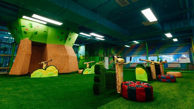 Можно побродить в игровом лабиринте и прокатиться с горки, сыграть в аэрохоккей, испытать драйв, прокатившись на тарзанке, от души попрыгать на батутах и порезвиться в поролоновом бассейне. Детям особенно сможет понравиться скалодром. Для малышей предусмотрена отдельная просторная игровая зона. В парке развлечений регулярно проводятся мастер-классы и анимационные программы.